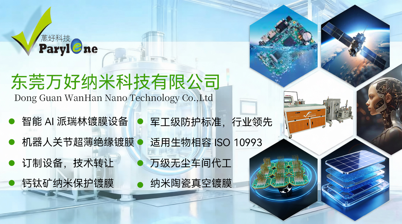 東莞萬好納米科技有限公司是美籍華興辦壹家獨資企業成立于2010年董事長(丘福民:美聯科技高分子總工程師)美國美聯高分子企業有限公司創立于1980年,美聯科技經美國軍規MIL-1-46058技術認證,NASA(美國太空總署)材料認證USP。萬好科技是一家專業(納米真空沉積涂裝高科技術)針對航天,航海,通訊電子產品。防酸堿,防水,醫療器材防霉菌等保護涂層。我司跟據客戶需求,我司參照進口技術自主研發一系列納米真空鍍膜設備領先行業內先技術,萬好科技可跟據客戶產品需求量身定制。